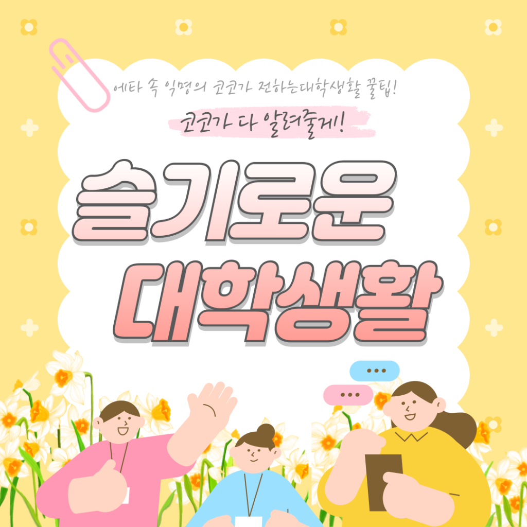 대학교 익명 커뮤니티인 에브리타임 속 깜짝 인터뷰를 통해 ‘코코zip’이 세번째 이야기를 맞이했다. 새 학기를 맞이해 고민이 많을 신입생을 중심으로 질의응답을 구성했다. 이번 인터뷰의 주인공인 익명3 학우의 알찬 조언을 들여다보자.